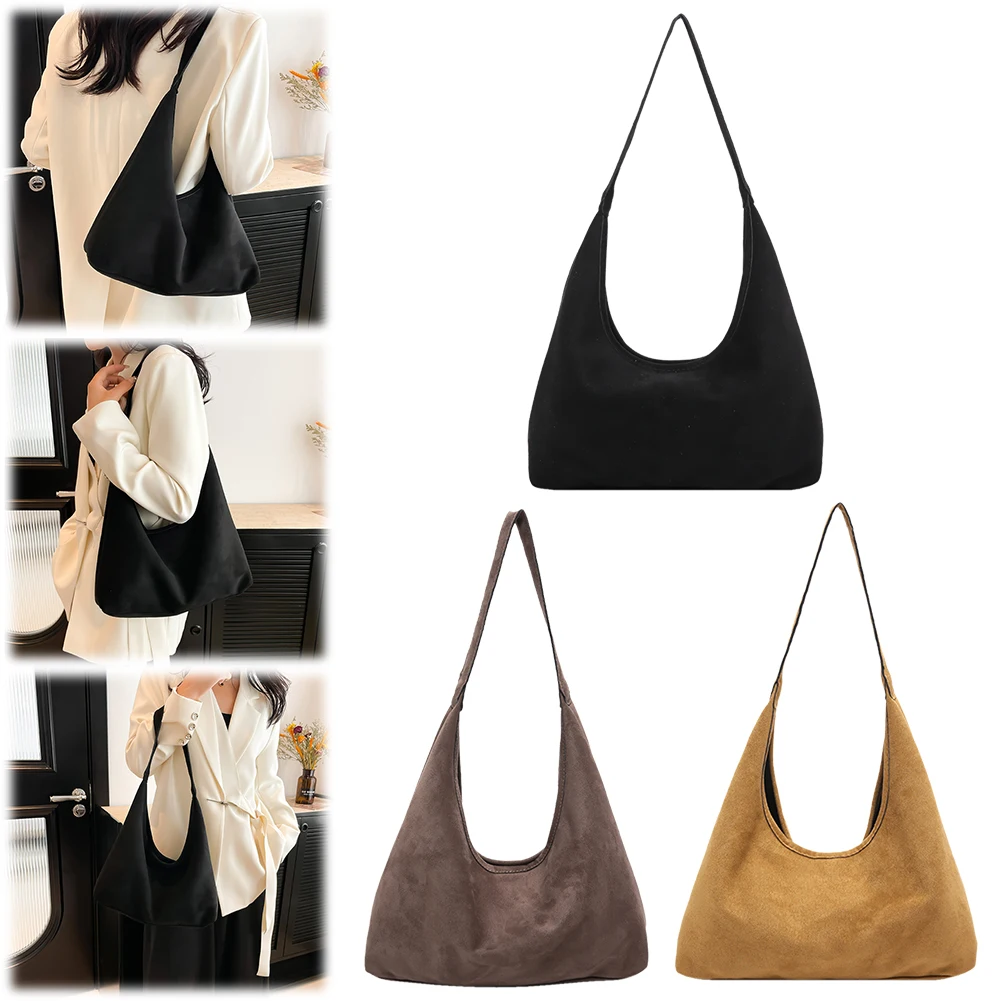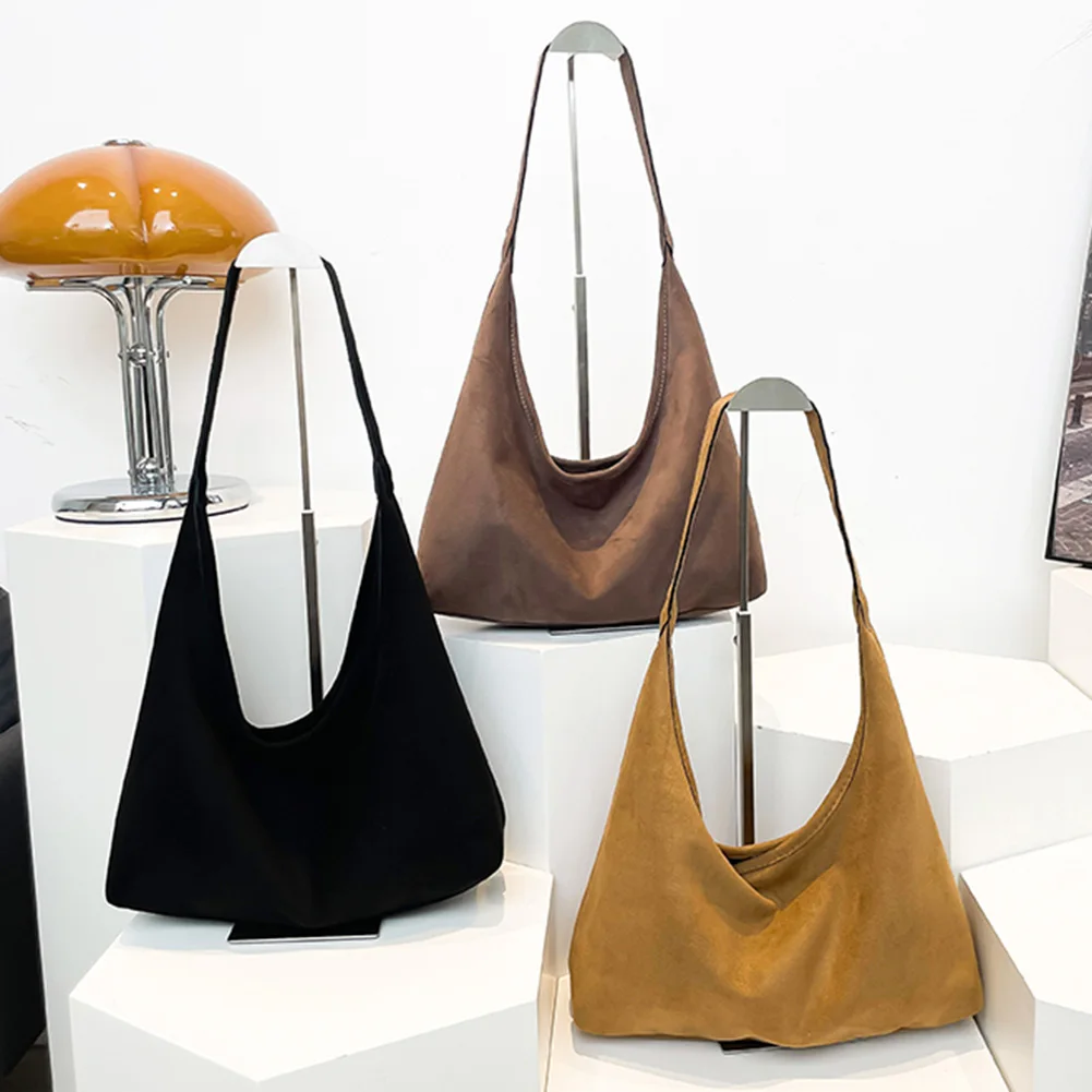 Women Suede Shoulder Purse Magnetic Closure Slouchy Hobo Bag Solid Color Underarm Bag Trendy Tote Bag Shopping Travel Bag