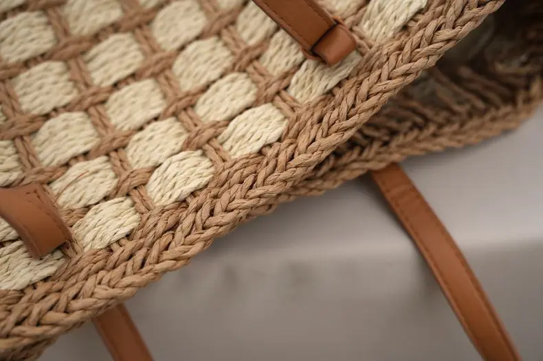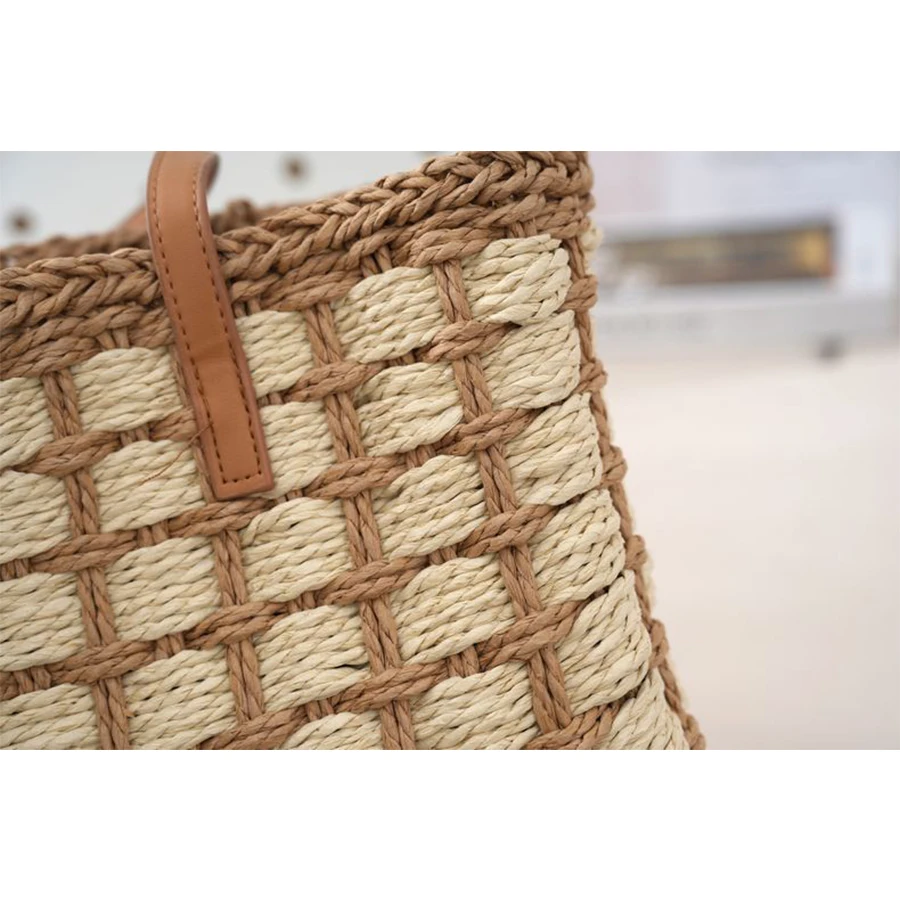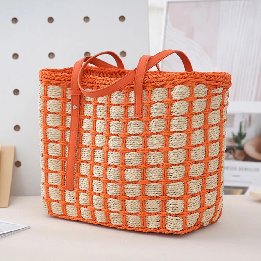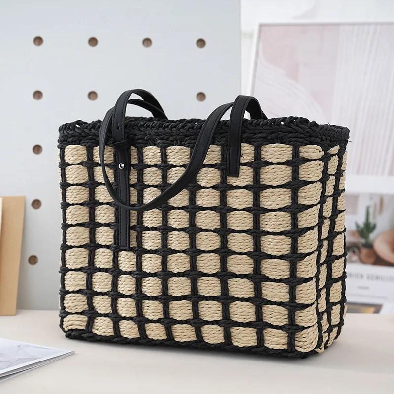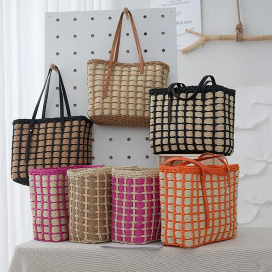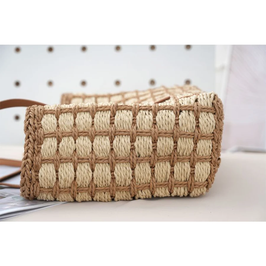 Women’s summer handbag patchwork plaid straw totes bag summer large capacity beach bag holiday casual woven small square bag sac